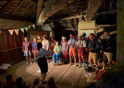 Elle cultive également son rapport à la scène par la pratique du théâtre sous différentes formes (clown, impro, masque…) et prend plaisir à mettre une touche théâtrale dans ses projets musicaux, comme c’est le cas avec ses dernières créations : 36 passage des soupirs et Le Bal Rétroviseur.